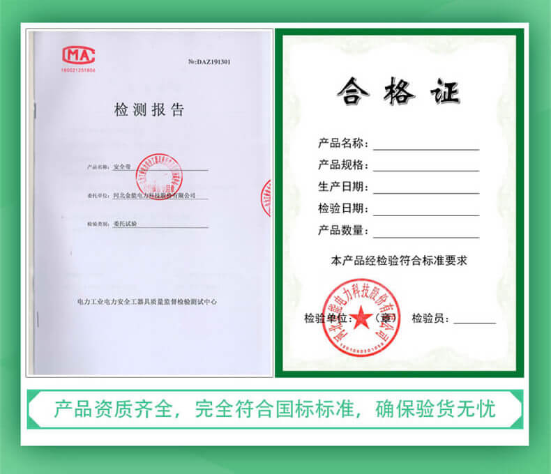金能電力除了為每一個(gè)用戶提供必須的合格證以外,他們還為您準(zhǔn)備了專業(yè)機(jī)構(gòu)出具的檢測報(bào)告。他們甚至承諾,但凡您購買的出口型全身式安全帶出現(xiàn)了任何質(zhì)量問題,您都可以在90天內(nèi)享受免費(fèi)的退換貨服務(wù),這也是他們能夠在優(yōu)勝劣汰的市場中立于不敗之地的主因。..