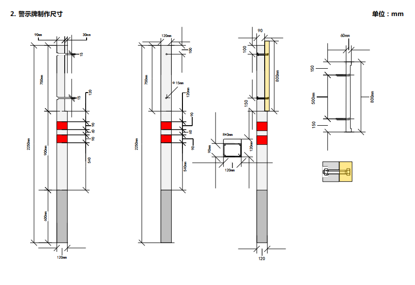 材料及制作:C20 鋼筋混凝土搗制成型,立桿埋入地下部分用混凝土固定。