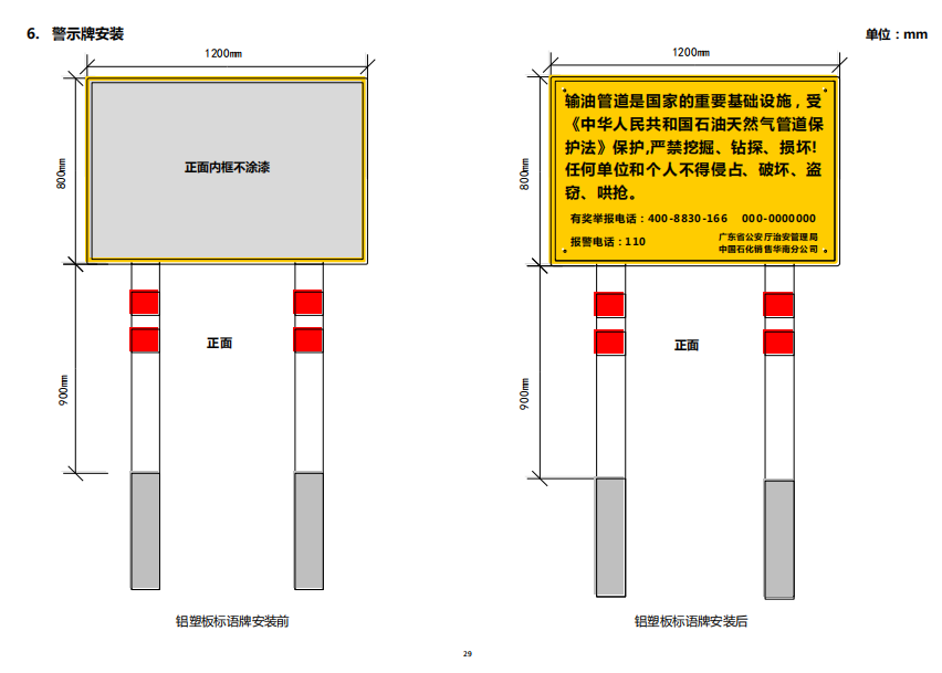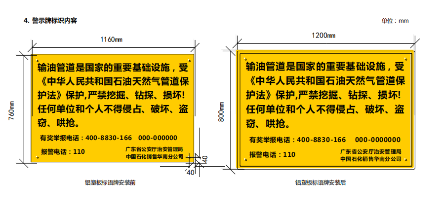 輸油管道線路標志牌規格尺寸,輸油管道線路警示牌圖集