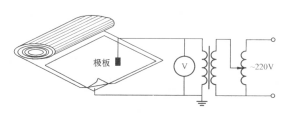 絕緣膠墊試驗接線如圖4所示。試驗時先將絕緣膠墊上下鋪上濕布或金屬箔,并應(yīng)比被測絕緣膠墊四周小200mm,連續(xù)均勻升壓至表8規(guī)定的電壓值,保持1min,觀察有無擊穿現(xiàn)象,若無擊穿,則試驗通過。試樣分段試驗時,兩段試驗邊緣要重合。