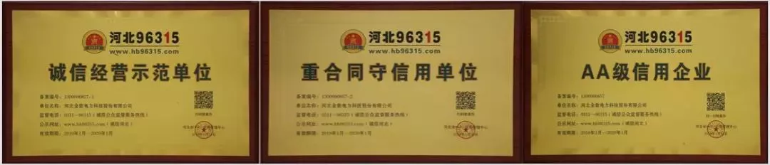 金能電力榮獲河北96315“誠(chéng)信經(jīng)營(yíng)示范單位”、“重合同守信用單位”、“AA級(jí)信用企業(yè)”