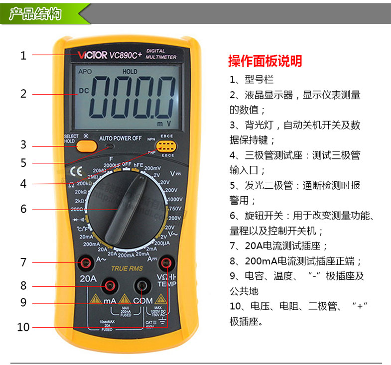 勝利萬能表vc890C+